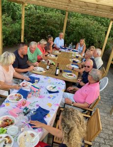 Fredag den 12 augusti gick vår sommarfest av stapeln. Vi inledde med mousserande, inmundigade en buffé och genomförde en kubbmatch med varierande resultat och regler som formades efter matchen gång :-). Det var många härliga skratt och avslappnade samtal. Efter mörkret inbrott denna ljuvliga sommarkväll fortsatte festen.